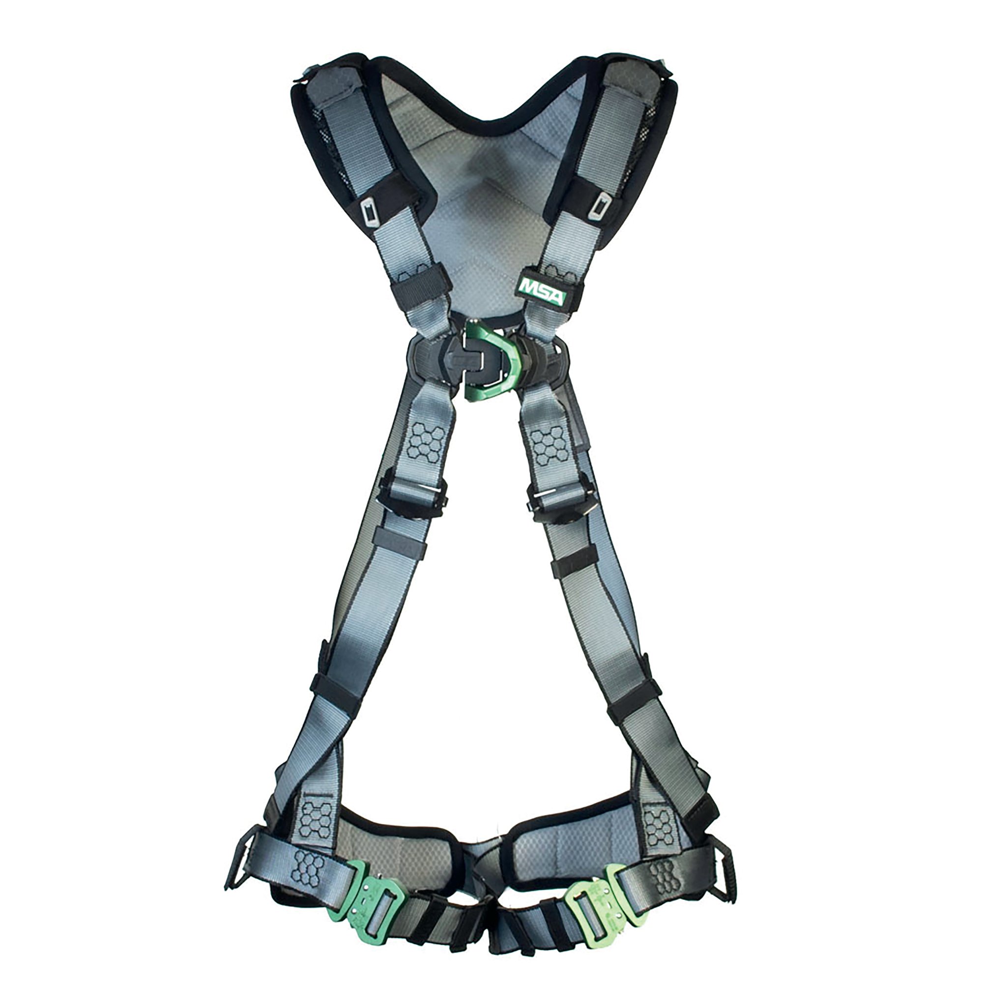 Featuring a patent-pending RaceFLExbuckle. bulky chest straps are eliminated for a close and comfortable fit. The athletic cut of the V-FIT harness contours to the body. improving upper torso movement on the job. while soft shoulder padding helps to eliminate pressure points and chafing for all day comfort.